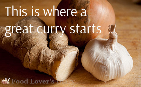 If I have received one generous comment over the years that I don't get too embarrassed over, it is that I make a good curry. I am quite proud of this, though I have to admit that the true compliment should be to my grandmother's Indian cook who, without knowing it, has inspired a generation of curry cooks in my family. But whichever route the knowledge came, I hold my hands up and say that yes, I do cook a good curry and the real heroes are three really important ingredients – onion, garlic and ginger.
